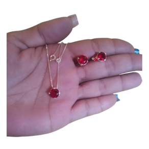 Kit Colar e Brinco Pedra de Zircônia Vermelha
