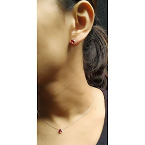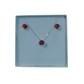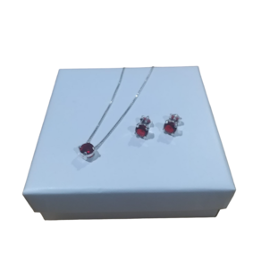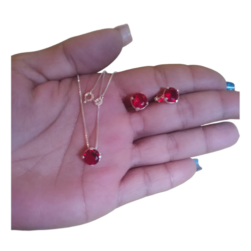 Kit Colar e Brinco Pedra de Zircônia Vermelha 6mm