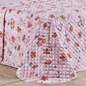 Kit Cobre Leito Colcha Belle King Estampado Dupla Face 400 Fios 3 Peças Floral Rosê Transforme o visual do seu quarto com o Kit Cobre Leito Belle, confeccionado em Micropercal 400 fios dupla face, que une a delicadeza do toque acetinado com a resistência e praticidade do tecido de alta qualidade.