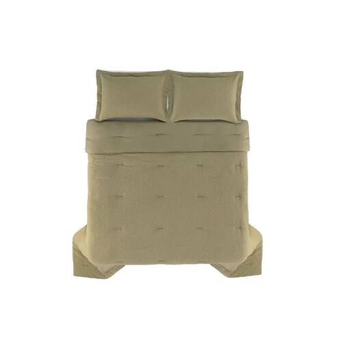 Especificações do produto Quantidade de Peças: 3 Peças Tecido: Poliéster Composição: 100% Poliéster Tamanho: Casal Itens Inclusos: 1 Colcha; 2 Porta travesseiros Medida: Colcha: 2,20m x 2,60m; Porta Travesseiro 50cm x 70cm Acabamento: Tecido com texturas de linhas horizontais na frente e verso; Enchimento de manta de poliéster 250gr; Porta travesseiro com 3 abas de 5cm. ATENÇÃO: não passe qualquer fonte de calor sobre o jogo, pois irá perder a textura. Marca: Não Informado