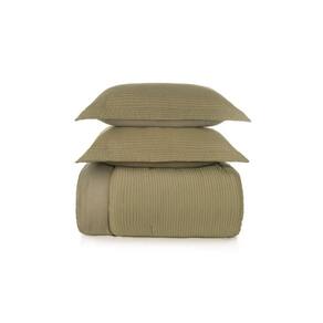 Acabamento: Tecido com texturas de linhas horizontais na frente e verso; Enchimento de manta de poliéster 250gr; Porta travesseiro com 3 abas de 5cm. ATENÇÃO: não passe qualquer fonte de calor sobre o jogo, pois irá perder a textura.