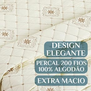 Kit Colcha Casal King Pérola 100%Algodao 200 Fios Super