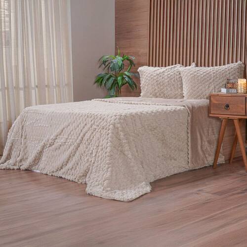 Kit Colcha Casal Luxor Jacquard 100% Poliéster 210x230cm Biscuit -
