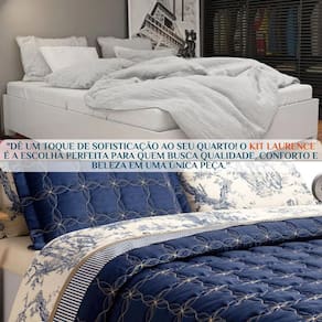 Por que você vai se apaixonar Imagine seu quarto com um toque de sofisticação, como aqueles de revista de decoração. O Kit Colcha Queen Laurence oferece exatamente isso Seu acabamento bordado luxuoso traz charme e requinte, enquanto o tecido de 200 fios garante um toque suave e confortável.