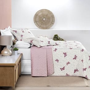 Kit Cobre Leito Colcha Celi Queen Dupla Face Micropercal 200 Fios 3 Peças Borboletas Rosê O Kit Celi é mais do que apenas uma peça de decoração; é uma experiência sensorial. Fabricado com o mais alto padrão de qualidade em mente, o micropercal de 200 fios dupla proporciona uma textura incrivelmente suave e macia, enquanto a atenção aos detalhes nas estampas garante um toque de sofisticação e romantismo ao seu quarto.