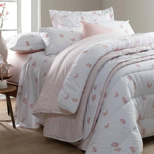 Kit Colcha / Cobre Leito Casal Sonhare Sultan Borboleta Rose