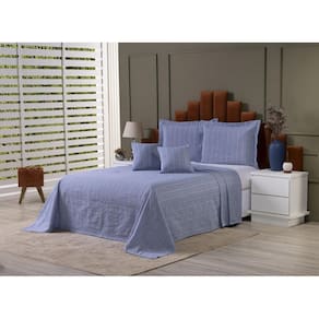 Kit Colcha Cobre Leito King + Cortina 3 Metros Tecido Rústico Topázio 6 Peças Cor: Azul Um kit completo pra deixar seu quarto super moderno e elegante.