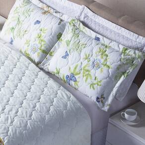 Kit colcha cobre leito queen 3 pçs aurora borboletas A coleção aurora lux é confeccionada em tecido micro percal peletizado com 180 fios nas estampas - rosas, bouquet, borboletas e floral vermelho.