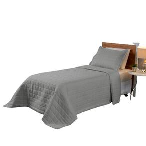 Kit Colcha Cobre Leito Soft Solteiro 2 Peça Dupla Face Cinza