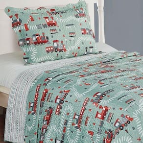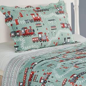Kit Colcha Evolution Patchwork Solteiro 2 peças Microfibra Trilhos -