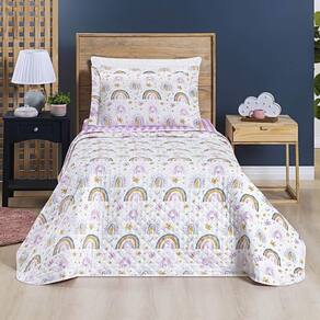 Kit Cobre Leito Colcha Solteiro Infantil Lutti Dupla Face 200 Fios 2 Peças Arco Íris Rainbow