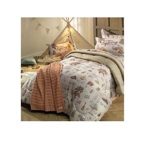 Kit Colcha Infantil Solteiro Aventura 100% Algodão Karsten Colcha Solteiro com Porta Travesseiro 200 Fios 100% Algodão Aventura Descubra o encanto e o conforto do Jogo de Colcha Infantil Aventura Ideal para camas de solteiro, este jogo mede 1,80m x 2,60m e é confeccionado em 100% algodão com 200 fios, proporcionando maciez incomparável e toque suave. Com um tecido encorpado, altamente respirável, antipilling e hipoalergênico, ele garante noites tranquilas e seguras para as crianças. A colcha apresenta design dupla face com cantos quadrados, permitindo variação na decoração do quarto. O porta-travesseiro de 50cm x 70cm acompanha o conjunto, com detalhes elegantes de 3 abas de 5cm. Nas sofisticada cores bege e marrom, o jogo apresenta uma linda estampa com elementos lúdicos e um xadrez no verso, harmonizando perfeitamente com outras peças da mesma linha ou tonalidade e agregando aconchego ao ambiente.