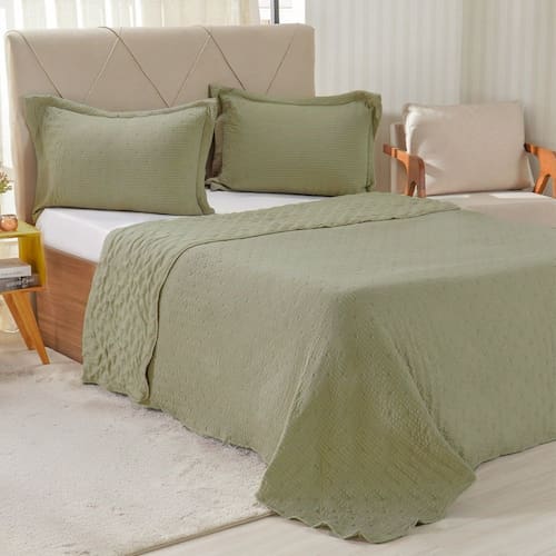 Tamanho Ideal: Com 260x280cm, a colcha se adapta perfeitamente a camas King Size, cobrindo toda a superfície da cama de forma elegante e funcional.