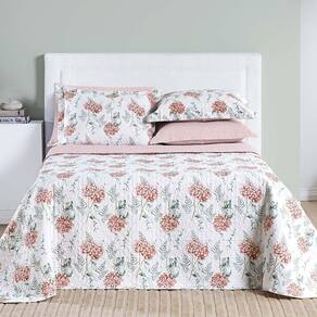 Kit Cobre Leito Colcha Maris Queen Estampado Dupla Face Percalle 200 Fios 3 Peças Hortênsia Salmão Kit Cobre Leito Maris - Conforto, resistência e beleza em cada detalhe