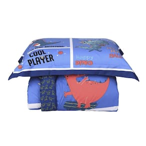 Kit Colcha Mellow Juvenil 180 fios Dino 2 peças 180x240cm - Sonhare Top Linha Mellow - Sonhare Top Modelo dupla face, sendo:-1 face nas cores azul escuro e branca. - 1 face nas cores azul marinho e verde. Estampa dinossauros. Contém 2 peças, sendo elas:- 1 colcha. - 1 porta travesseiro. Ideal para cama de solteiro. COMPOSIÇÃO: Poliéster 100% 180 Fios MEDIDAS:Colcha: Largura 180cm x Comprimento 240cmPorta travesseiro Largura 70cm x Comprimento 50cm INSTRUÇÕES DE CUIDADO: Lavar com água e sabão neutro. Não usar alvejante.