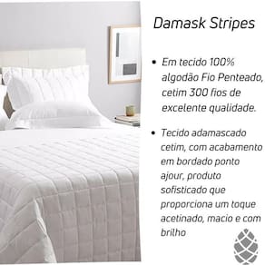 Em tecido 100% algodão fio penteado, cetim 300 fios de excelente qualidade. Enchimento 100% poliéster. Dupla face. A coleção damask stripes da buddemeyer é produzida em tecido adamascado cetim 300 fios, com acabamento requintado, produto sofisticado que proporciona um toque acetinado, macio e com brilho. Porta travesseiro matelassê, com abas. Colcha matelassê, dupla face. Em tecido 100% algodão fio penteado, cetim 300 fios de excelente qualidade. Enchimento 100% poliéster. A buddemeyer é referência em qualidade e estilo.
