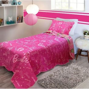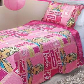 Kit Colcha Ultrasonic Mattel Barbie Dupla Face Solteiro - Jolitex