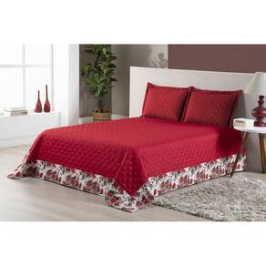 Kit Colcha Vitória Casal Queen Com Babado 3 Peças Vermelho