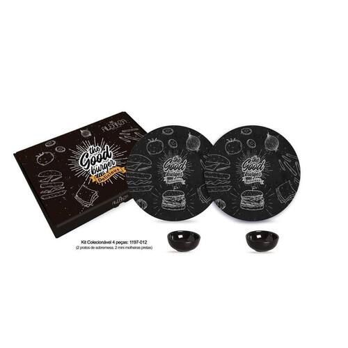 O Kit Colecionável Alleanza 4 Pçs Mini Molheira Burger Black possui embalagem em caixa parda e conta com garantia de 90 dias por defeito de fabricação. É importante ressaltar que, devido ao processo de transformação de matérias-primas naturais e às etapas de conformação, decoração e queima, podem ocorrer pequenas variações de tonalidades de cor, brilho, textura e tamanho das peças.