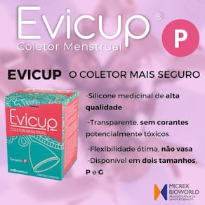 Kit coletor menstrual evicup p + caixinha esterilizadora + evicev 120 ml higiene e beleza íntima Kit coletor menstrual evicup p + evicev 120 ml + caixinha esterilizadora Mais prático, saudável, higiênico, confortável e ecologicamente sustentável, além de ser muito econômico, pois um evicup pode ser por até 5 anos. Feito com silicone medicinal, totalmente antialérgico e seguro. O tamanho g grande é recomendado para mulheres com mais de 30 anos ou que já tem filhos. O tamanho p pequeno é recomendado para mulheres com menos de 30 anos e que não tem filhos bem como para adolescentes, dependendo do tipo corporal. Toda vez que for removido e esvaziado, é recomendado a higienização do coletor menstrual com água e sabão, antes de reintroduzi-lo. Também é recomendado esterilizar o coletor menstrual antes do primeiro uso e após o final de cada ciclo de utilização, utilizando a caixinha esterilizadora micrex-bioworld. Totalmente destinada a esterilizar os copos menstruais no micro-ondas, trazendo mais praticidade e segurança comparado a esterilização feita no fogão. Feito com material próprio polipropileno para utilização no micro-ondas Advertências: - este produto não é contraceptivo e não pode ser como tal. - mulheres com prolapso, retroversão ou ante-flexão do útero, deve consultar um médico antes de iniciar o uso do coletor menstrual. - o coletor menstrual foi desenvolvido para atender a todas as faixas etárias das mulheres, entretanto aconselhamos que consulte seu médico ginecologista antes de iniciar o uso, principalmente nos seguintes casos: mulheres que ainda não tiveram a sua vida sexual iniciada, mulheres que utilizam algum tipo de contraceptivo interno ex.: diu , e mulheres que estão no período pós-parto. - caso houver dificuldades para remoção do coletor menstrual, procurar ajuda médica o mais rápido possível. - os coletores menstruais podem estar associados com a síndrome do choque tóxico sct . Conservação: Temperatura ambiente O que é evicev Evicev é um produto de higiene, beleza e hidratação íntima inovador com propriedades exclusivas sobre a região , podendo ser com ou sem enxague: - efeito antienvelhecimento e preenchedor, evitando o enrugamento e escurecimento contém ac. Hialurônico - efeito hidratante em caso de secura da região - diferente da grande maioria dos produtos de higiene íntima brasileiros, evicev tem um ph levemente alcalino como na maioria dos produtos nos eua e europa , ajudando a prevenir e tratar a candidíase favorizada por acidificação excessiva Indicações: Evicev é uma opção segura e eficaz para a higienização diária de toda região intima, especialmente para mulheres que se preocupam com a sua aparência e beleza, além das que sofrem de candidíase ou secura de região . Evicev é indicado para: - uma higiene íntima eficaz e segura proporcionando uma sensação agradável de frescor - prevenção do envelhecimento da mucosa evitando o enrugamento e escurecimento. Efeito alisador. Modo de uso: Uma pequena quantidade de espuma evicev já é suficiente para toda limpeza da região. Colocar uma pequena quantidade de espuma na mão e proceder a limpeza da região . Enxaguar bem e repetir enxaguando levemente. Pode também em casos de necessidade, ser sem enxágue. Apresentações: Frasco de 120 ml Composição: Tretasodium edta, sodium chloride, lauryl glucoside, cocamidopropyl betaine, cocamide dea, peg-150 pentaerythrityl tetrastearate, peg-6 caprylic/capric glycerides, centella asistica leaf extract, lavanda angustifolia oil, rosmarinus officinalis leaf oil, thymus vulgaris leaf oil, cupressus sempervirens leaf oil, aesculus hippocastanum seed extract, hyaluronic acid, parfum, coumarin, linalool, sodium hydroxide, aqua Contraindicações e precauções de uso: Uso externo. Manter fora do alcance de crianças e animais. Em caso de irritação, suspender o uso e procurar orientação médica.