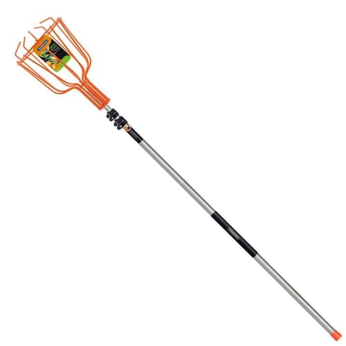 - Com o colhedor de aço leve e resistente e o cabo ajustável, você alcança até as frutas mais altas de forma segura e prática.