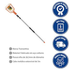 - Para alcançar aqueles locais mais altos, seja para realizar a poda de galhos, ou para colher frutas, conte com o cabo metálico extensível 5 metros Tramontina para serrote e colhedor de frutas.