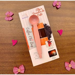 A colher é um acessório 2 em 1: clip que permite fechar a embalagem, garantindo o frescor do seu café e dosador na medida certa para um bom café podendo ser utilizado para açúcar e outros condimentos.