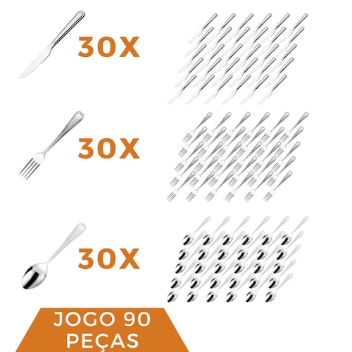 Kit Colher Garfo Faca Aço Inox 90 Peças Bar / Restaurante
