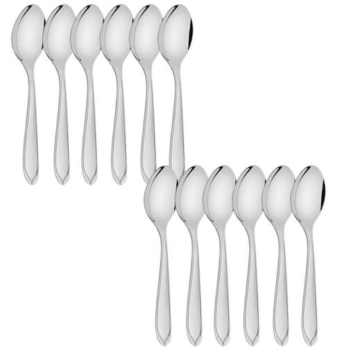- Peças totalmente feitas de aço inox, altamente duráveis, preservando a beleza, a higiene e a durabilidade do material. - Colheres com bojo em formato simétrico e bordas cuidadosamente arredondadas. - Acabamento em brilho, com detalhes no cabo. - Próprias para uso diário combinam com qualquer ambiente. - Podem ser lavadas diariamente na máquina de lavar louças.