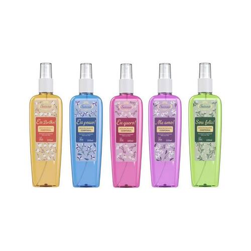Kit colônia suissa splash 250ml: eu quero + eu posso + eu brilho + sou feliz + me amo Descrição O kit colônia suissa splash é composto por cinco fragrâncias que oferecem uma experiência perfumada única e especial para diferentes momentos do dia. Cada splash vem em uma embalagem de 250ml, perfeita para proporcionar frescor e bem-estar. Com nomes inspiradores como eu quero, eu posso, eu brilho, sou feliz e me amo, essas colônias são ideais para quem busca fragrâncias leves, marcantes e com um toque de personalidade. Eu quero: aroma leve e vibrante, perfeito para iniciar o dia com energia e motivação. Eu posso: fragrância suave que traz confiança e determinação. Eu brilho: perfume radiante que realça a autoestima e o charme natural. Sou feliz: cheiro alegre e descontraído, ideal para momentos de felicidade e descontração. Me amo: aroma acolhedor e envolvente, ideal para momentos de autocuidado e amor-próprio. Modo de uso: aplique o splash por todo o corpo, especialmente após o banho ou sempre que desejar sentir-se perfumada e revigorada. Pode ser diariamente, em qualquer momento do dia. Marca: Não Informado