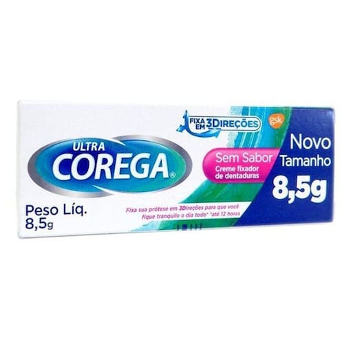 Descrição Corega ultra creme sela a prótese, ajuda a bloquear a entrada de partículas de alimentos, além de proporcionar segurança e conforto durante o dia. Corega ultra creme é formulado para o dia inteiro e possui um sabor natural de forma que não interfere na forma como você come seus alimentos. Ele ajuda a bloquear a entrada de partículas de alimento entre a dentadura e a gengiva. Fixa o dia todo, proporcionando segurança e conforto para o usuário, que pode falar, sorrir e comer com mais liberdade. Forma um filme selante que ajuda a impedir a entrada de alimentos entre a dentadura e a gengiva, evitando o desconforto e o desenvolvimento de bactérias que causam mau hálito. Benefícios: - ajuda a bloquear partículas de alimentos; - fixação e segurança o dia todo; - aumenta a força de mordida; - dura até 12 horas; - formulação livre de zinco. Modo de usar: 1 lave e seque a prótese; 2 aplique em pequenas tiras, não muito perto das bordas; 3 enxágue a boca antes de colocar a prótese; 4 coloque a prótese corretamente na boca, pressione firmemente e morda por alguns segundos para fixação.