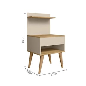Ideal para ambientes compactos, a Mesa de Cabeceira Kosovo foi projetada para otimizar quartos com pouco espaço, proporcionando mais funcionalidade e organização ao seu dia a dia. Possui uma gaveta espaçosa, um nicho para livros e uma prateleira adicional, garantindo que tudo fique ao seu alcance.Características Principais- 1 Gaveta com corrediças- 1 Nicho- 1 Prateleira- 4 Pés palito em estilo retrôDimensões do Produto Montado- Altura: 74,9 cm- Largura: 37,5 cm- Profundidade: 32,7 cmConteúdo da Embalagem- 2 Mesa de Cabeceira- 1 Manual de Montagem- 2 Kit de MontagemObservações:- Objetos de decoração não acompanham o produto (imagens meramente ilustrativas).- Enviado desmontado, com manual de instruções para montagem.