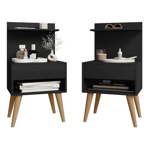 Kit com 02 unidades Mesa de Cabeceira KOSOVO PRETO - Preto
