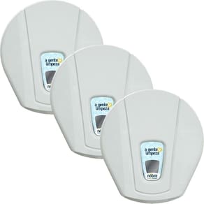Kit com 03 Dispensadores para Papel Higiênico tipo Rolão Nobre City Branco Ideal para locais com grande circulação de pessoas. O dispenser tem um design clean e moderno combinando com diversos ambientes. Confeccionado em polipropileno de alta qualidade ele é super resistente e durável. Possui visor para acompanhamento do nível do papel e serrilhado nos três lados para facilitar extração do papel sem desperdícios. Indicado para uso com rolos institucionais de 200 a 500 metros mas também pode ser utilizado com rolos convencionais.