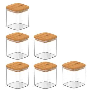 06 Potes Herméticos Keep 150ml Altura: 7 cm, Largura: 6,5 cm, Profundidade: 6,5 cm Material: Poliestireno + Bambu Capacidade: 150 ml