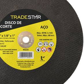 Como Obter Resultados Notáveis: Certifique-se de que o material esteja firmemente fixado e seguro antes de iniciar o corte. Utilize o disco em uma esmerilhadeira angular compatível com o furo do disco. Mantenha a esmerilhadeira em um ângulo apropriado e execute movimentos suaves para um corte uniforme. O Disco de Corte Metal 12 300x3,0 mm com Furo 25,04 mm é a ferramenta confiável que oferece cortes rápidos e precisos, assegurando resultados superiores em cada aplicação. Adquira agora e experimente a potência e a precisão que farão a diferença em seus projetos de corte. Disco De Corte Para Aços Indicado Para Corte De Aços. 2 Telas/Reforçado. Tamanho: 12 300mm Espessura: 3,0 MM Furo: 25,4 Quantidade por embalagem - 10 unidades Garantia 90 dias após a compra. Imagens meramente ilustrativas As tonalidades da cor do produto podem sofrer alterações de acordo com a tela que estiver usando para visualização. Vantagens de Comprar com a JJC Ferramentas: Experiência e Confiança: Somos especialistas em ferramentas e acessórios, garantindo produtos de qualidade e desempenho superior. Variedade e Qualidade: Oferecemos uma seleção abrangente de ferramentas, sempre priorizando a durabilidade e eficiência. Atendimento Personalizado: Nossa equipe está pronta para ajudá-lo, oferecendo suporte técnico e orientações precisas. Entrega Rápida: Garantimos uma logística eficiente, assegurando que seu pedido chegue no menor tempo possível. Satisfação Garantida: Se por algum motivo não ficar satisfeito, oferecemos política de devolução sem complicações. Marca: Tradestar Ean: 7898751383588