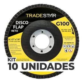 Kit com 10 unidades disco flap reto 4.1/2 x 7/8 fds115-100fc z100 tradestar O disco flap reto 4.1/2 x 7/8 fds115-100fc z100 grão 100, a escolha essencial para profissionais que buscam remoção eficiente de material e excelentes acabamentos em suas atividades. Com um diâmetro de 180mm, este disco flap oferece o equilíbrio perfeito entre remoção de material e acabamento preciso em diversas superfícies. Principais características e aplicações: Realize remoção de material e obtenha acabamentos precisos em metais, madeira e outras superfícies. Indispensável para uso industrial, manutenção e projetos de construção. Como usar: Certifique-se de que a superfície esteja limpa e pronta para a remoção ou acabamento. Utilize o disco em uma esmerilhadeira angular compatível com o tamanho e tipo de disco. Mantenha a esmerilhadeira em um ângulo adequado e realize movimentos controlados para um trabalho uniforme. O disco flap reto 4.1/2 x 7/8 fds115-100fc z100 grão 100 é o acessório que oferece remoção eficaz e acabamentos excepcionais, garantindo resultados superiores. Eleve sua performance com o disco flap reto 4.1/2 x 7/8 fds115-100fc z100 grão 100 Adquira agora e experimente a qualidade e a eficiência que farão a diferença em suas tarefas diárias. Disco flap reto Tamanho: 4.1/2 115mm Grão: 100 Quantidade por embalagem - 1 unidade 90 dias após a compra. Imagens meramente ilustrativas As tonalidades da cor do produto podem sofrer alterações de acordo com a tela que estiver usando para visualização. Vantagens de comprar com a jjc ferramentas: Experiência e confiança: somos especialistas em ferramentas e acessórios, garantindo produtos de qualidade e desempenho superior. Variedade e qualidade: oferecemos uma seleção abrangente de ferramentas, sempre priorizando a durabilidade e eficiência. Atendimento personalizado: nossa equipe está pronta para ajudá-lo, oferecendo suporte técnico e orientações precisas. Entrega rápida: garantimos uma logística eficiente, assegurando que seu pedido chegue no menor tempo possível. Satisfação garantida: se por algum motivo não ficar satisfeito, oferecemos política de devolução sem complicações. Marca: Tradestar