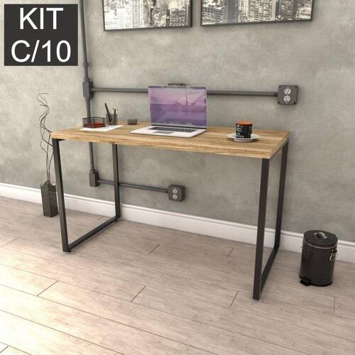 Kit com 10 Escrivaninhas Kuadra 120cm Estilo Industrial Compace Carvalho - Marrom