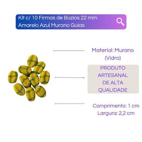 Kit com 10 Firmas Búzios 22 mm Murano Guias Cor: Amarelo e Azul Kit com 10 Firmas de Búzios 22 mm Laranja Murano Guias