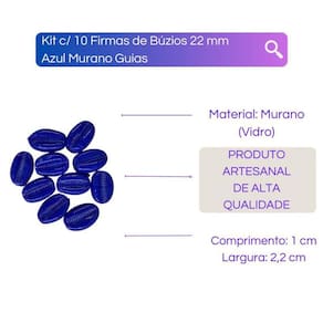 Kit com 10 Firmas de Búzios 22 mm Azul Murano Guias Firmas de Búzios, trará, Paz, Intuição e Proteção. Para fazer a sua guia de proteção, você vai usar um cordão de náilon ou barbante no qual possa colocar contas da cor pedida pelo seu Orixá.Dê um nó na ponta, deixando um pedaço a mais sem contas e vá colocando-as até ficar de um tamanho até mais ou menos na altura do umbigo. Antes de começar, em um lugar calmo de sua casa, reze um Pai-Nosso para seu Orixá.Kit c/10 Firmas para guias na Umbanda e Brajás no Candomblé.Composição: 100% vidroFormato: Formato de búzios com furo passante no meioDimensões da peça aproximada: 2,2 cm X 1 cmProduto 100% Artesanal, reprodução das cores podem variar de acordo com as configurações do seu monitor, lote de fabricação, o produto pode apresentar leve variação de cores e padrões.Imagens meramente ilustrativasTire todas as suas Dúvidas antes de concluir a compra. Iremos responder o mais breve possível.Embalagem de Envio: Caixa de papelão ondulado, plástico bolha, conforme necessidade do produto. Consulte nossos preços e condições para vendas.Respostas das dúvidas mais frequentes na ordem:R1: Já realizamos milhares de entregas em todo o Brasil, somos especialistas no que fazemos.R2: Assim que seu pedido for despachado, esta plataforma envia para você o código de rastreamento.R3: Enviamos o produto 100% inspecionado e conferido em nosso checkout e são embalados em embalagem de papelão e plástico bolha.R5: Iremos despachar o seu produto o mais rápido possível, assim que for confirmado pela plataforma, enviamos em até 24h.R6: Nós queremos a sua satisfação, qualquer problema iremos te auxiliar em nossos canais de comunicações. Marca: Lua Mística - 100% Original - Loja Oficial