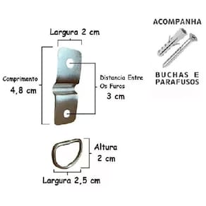 Conteúdo da Embalagem: - 10 Chapa Pitao - 10 Argola - 20 Parafuso com bucha