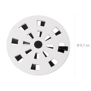 Kit com 10 Grelha com sistema anti-Inseto, redonda em PVC branca com diâmetro de 9,7cm. Indicada para instalação no sistema de drenagem de banheiros, cozinhas, lavanderias, áreas externas, corredores e em caixas sifonadas. Acabamento: Branco Altura do Conjunto: 1.1 cm Ambiente: null Ambiente Principal: Banheiro Cor: Branco Cor Predominante: Branco Informação Complementar: 10x Grelha Redonda com Diâmetro de 9,7cm e Anti-Inseto em PVC Branca Largura: 9,7 cm Altura: 1.1 Peso: 0.03932