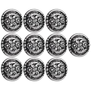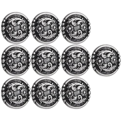 Margarida Floral Rodeo West, fabricada em metal na cor Prata Envelhecida. Modelo fixado por rebite.