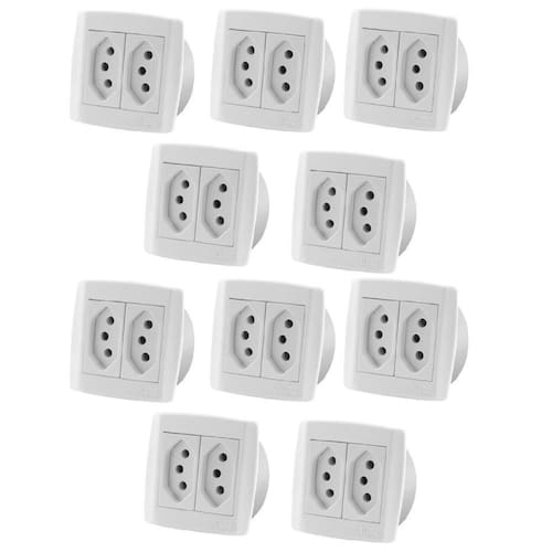 Kit Com 10 Pç Tomada 20A Dupla Para Móveis Ilumi Slim Branca