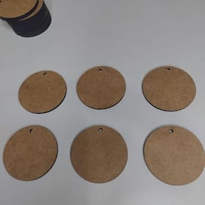Chaveiro em MDF 3mm, é cortado a laser redondo com furo