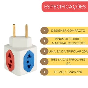 Pode ser ligado até 4 aparelhos eletrônicos com segurança, material resistente anti-chama.Compre com Segurança e Qualidade.o cubo tem 4 tomadas do modelo 10 amperes para aparelhos de baixa voltagem.Transforme sua tomada em 4.Novo adaptador de tomada Benjamin. Cubo 4 em 1.110/220v bivolt.Adaptador De Tomada CuboModelo Novo.4 entradas de 2 ou 3 pinos 10aPara Tomada Nova e Antiga.110v/220v.Despacho de imediato.Foto real do produto.Pino maciço.