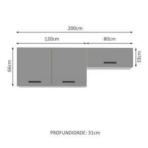Kit com 2 Armários Aéreos Multiuso 3 Portas Branco/Cinza Agata Madesa