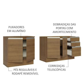 Kit com 2 Balcões de Cozinha Madesa Glamy 4 Portas 3 Gavetas (Sem Tampo e Pia) - Rustic - Marrom