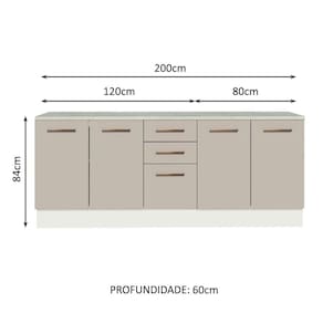 - Um (1) Balcão de 120 cm de largura com duas (2) portas, três (3) gavetas e tampo