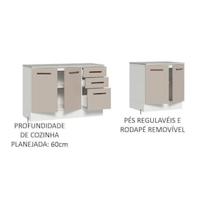 Para completar, os pés são reguláveis em PVC e o rodapé em MDP é removível para facilitar a limpeza.